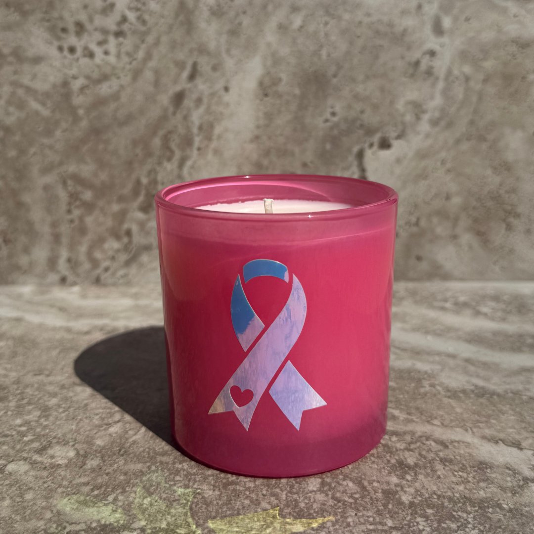 Each candle is poured with purpose, symbolizing support for Breast Cancer Awareness and the unwavering light that shines within every survivor and fighter.